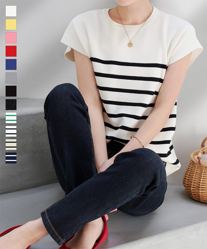 フレンチスリーブニットトップス レディース 春ニット ノースリーブ レイヤード シンプル パステルカラー カラーニット オフィスカジュアル ゆったり 体型カバー 大きいサイズ 黒 白 [C6608] 【送料無料】
