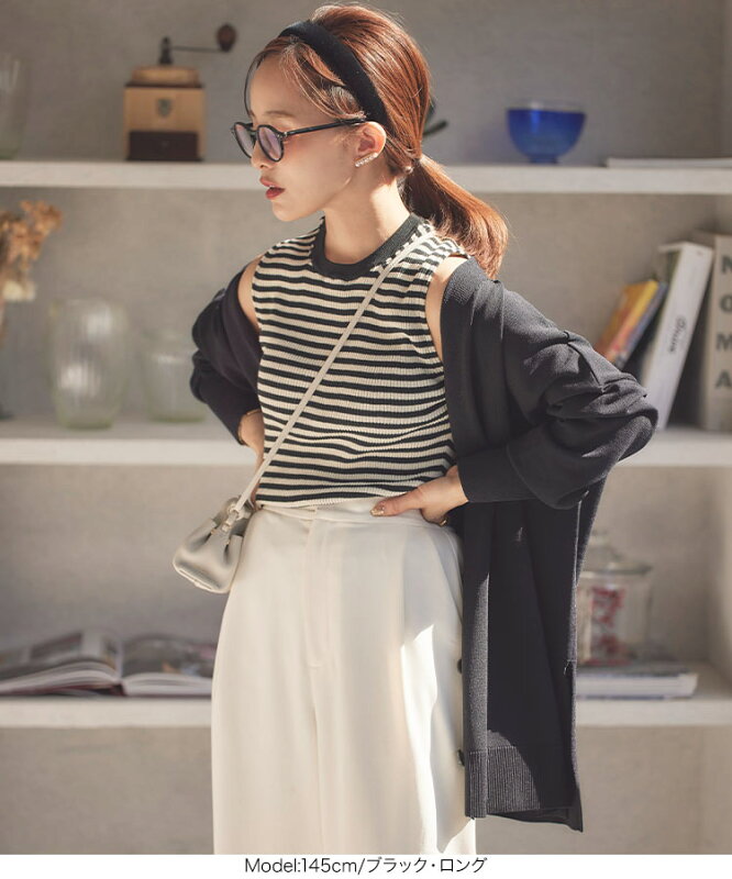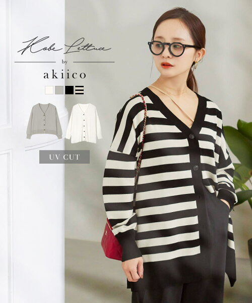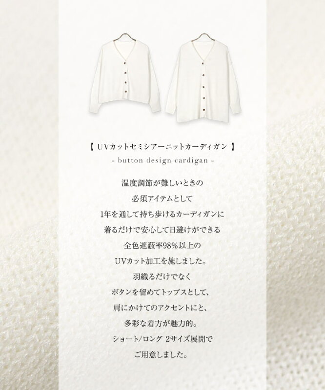 [ 田中亜希子さんコラボ ] UVカット セミシアー ニットカーディガン レディース 冷房対策 紫外線対策 トップス ロング ショート サマーニット カーデ ニット Vネック UV加工 羽織り 上着 低身長 小柄 華奢 ママ ゆったり 黒 30代 40代 春 夏 秋 重ね着 [C6645] 【送料無料】