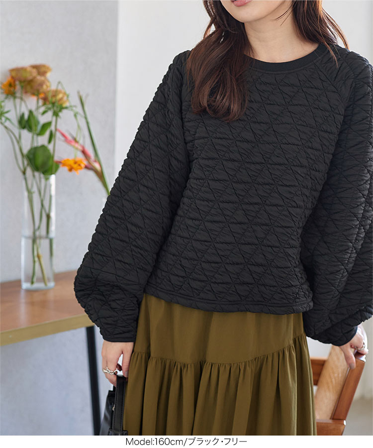 ボリューム袖 ショート丈 キルティングトップス レディース トップス 長袖 秋冬 秋 冬 スウェット スエット ぽわん袖 黒 白 チャコール 短め 短丈 カジュアル ブラック アイボリー グレー ボリュームスリーブ ゆったり 大人 キルティング ランタンスリーブ [C6900]