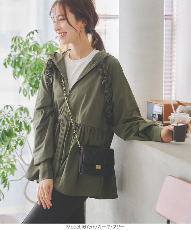 ジップ付きのポケットが実用的で、内側の絞りでペプラムの形になるところもお気に入りポイントです。