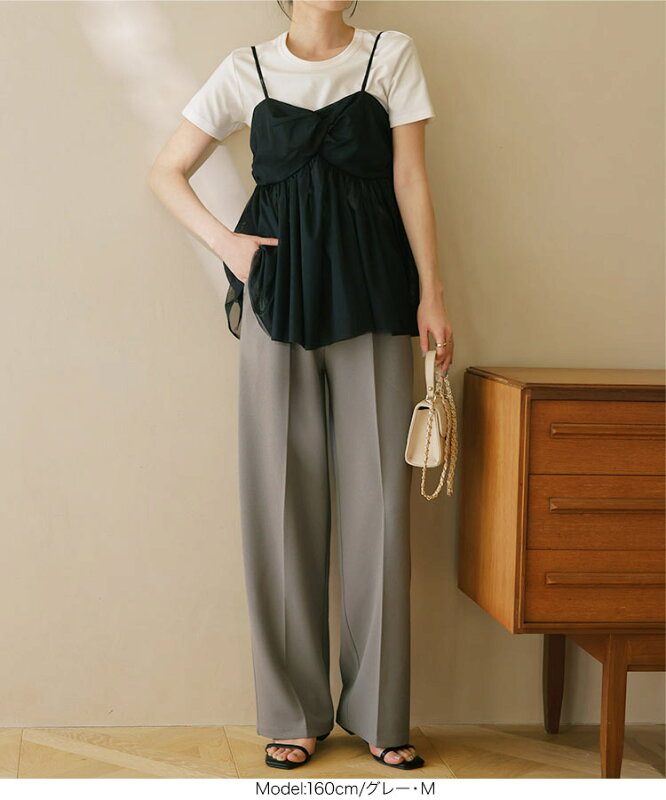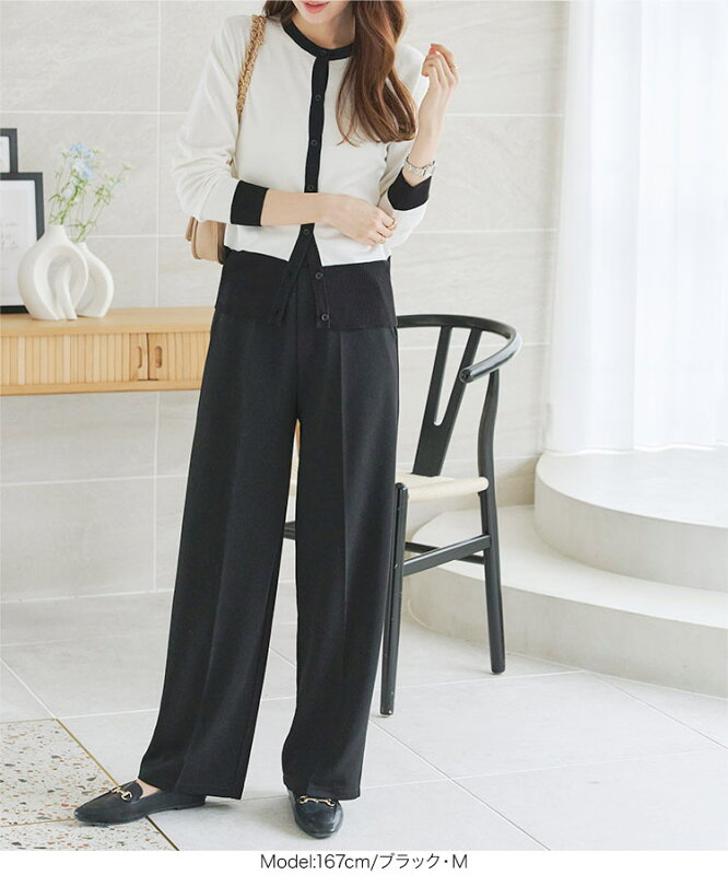 ≪ スーパーセール 注目アイテムセール sale ≫送料無料! イージーケア センタープレス ワイドパンツ レディース パンツ ゆったり ストレート ワイド タックワイドパンツ スラックス ボトム ハイウエスト バックゴム ウエストゴム [M4019]【送料無料】