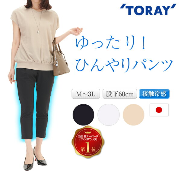 パンツ テーパード レディース ゆったり 7分丈 速乾 ストレッチ 夏用 涼しい 冷感 接触冷感 太もも痩せ 着痩せ 日本製 東レ生地 夏 紫外線カット 吸汗速乾 プルオン アンクル丈 大きいサイズ もあり 仕事 ズボン ワイド ウエストゴム ストレッチ ナイロン86%
