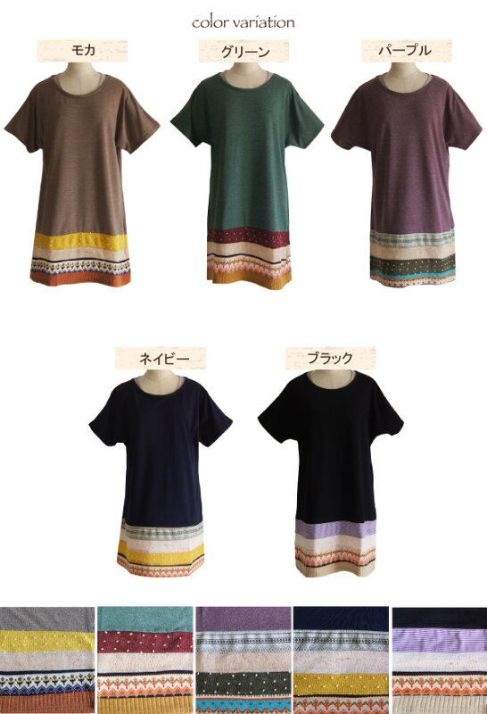 【20%OFF→2,552円 BIGセール】チュニック ワンピース パッチワーク 半袖 裾切替 ゆったりプレゼント ラッピング無料 セレクト Muddy