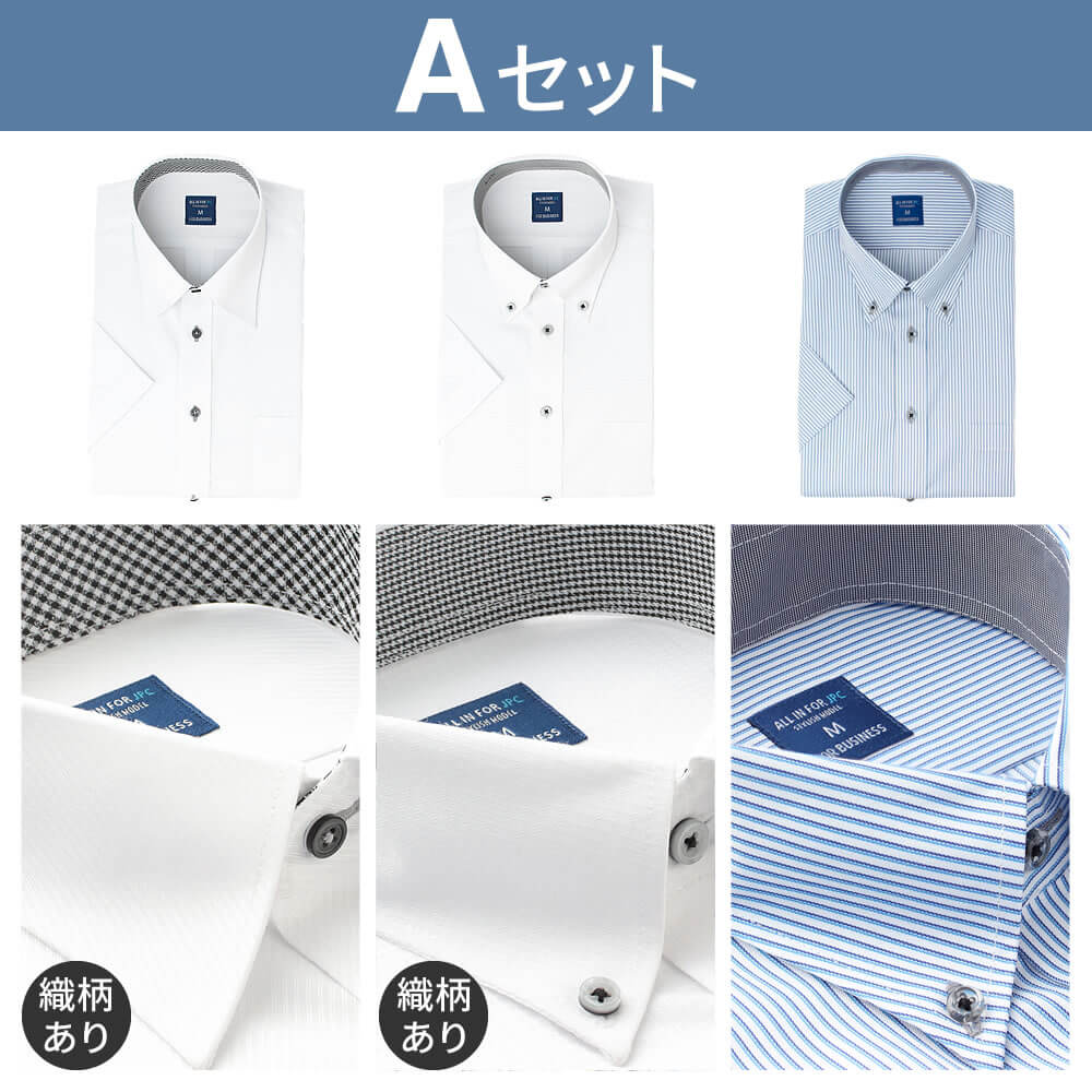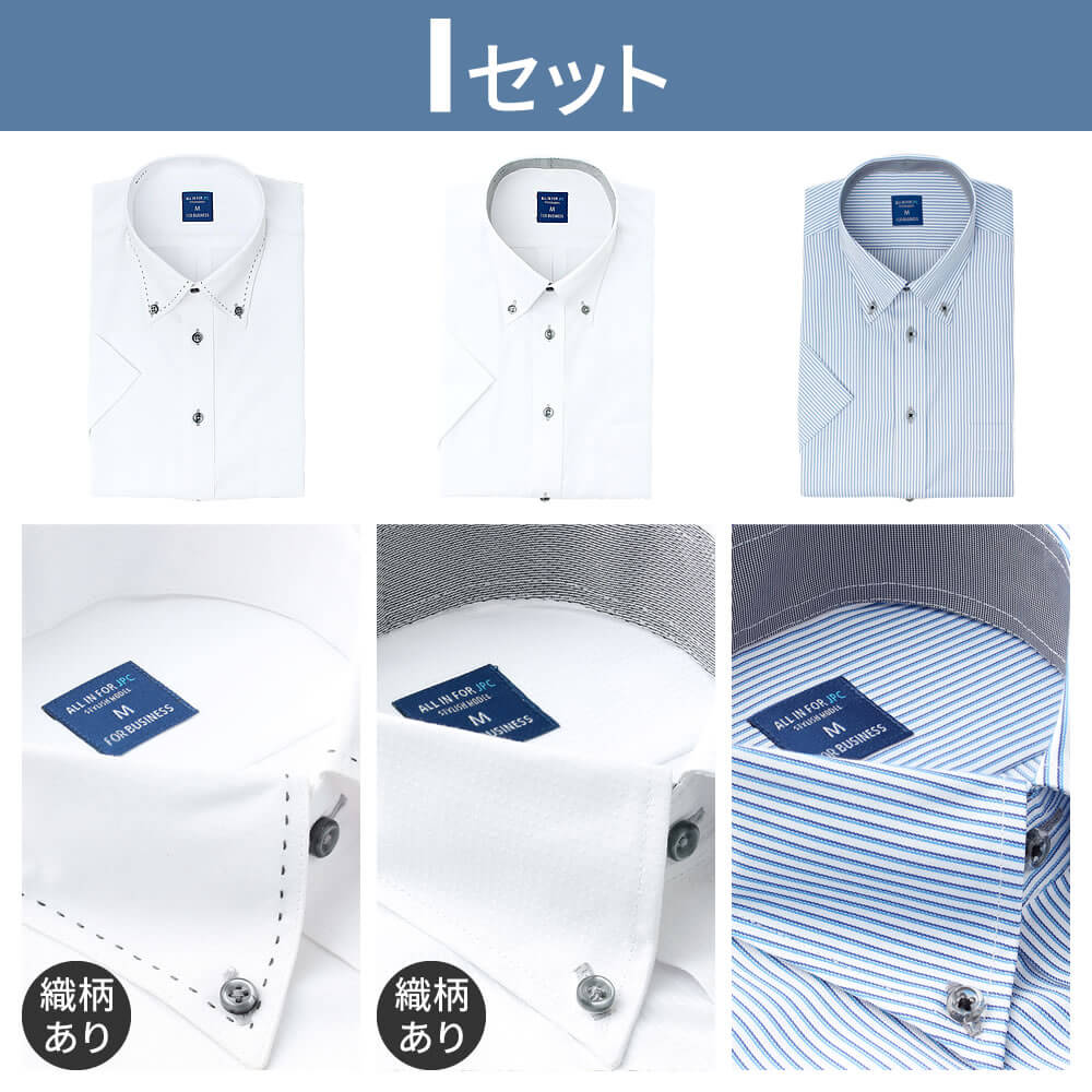 ワイシャツ 半袖 3枚セット メンズ 形態安定 Yシャツ カッターシャツ ビジネスシャツ クールビズ ボタンダウン レギュラー衿 ビジネス ビジカジ ゴルフウェア シャツ 制服 新卒 営業 at-ms-set-1172-3fix 宅配便のみ テレワーク 父の日