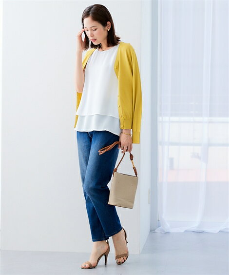 チュニック レディース ジョーゼット 裾ティアード ブラウス オフホワイト/グレージュ/スモーキーグリーン/ブルーグリーン/黒 S/M/L/LL 体型カバー お尻隠れる ニッセン nissen