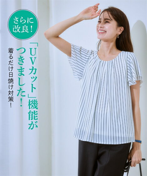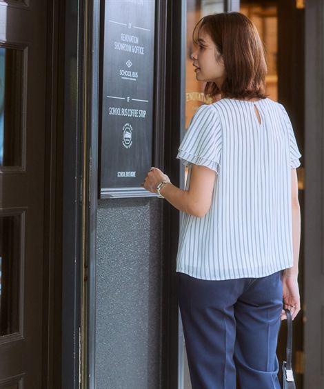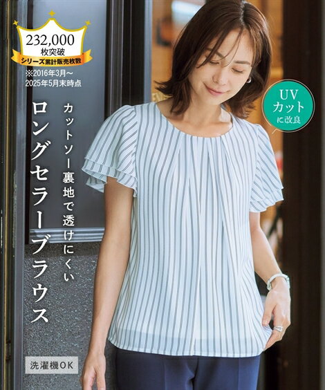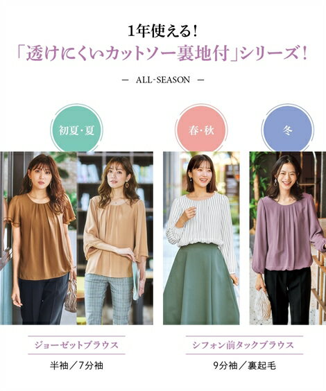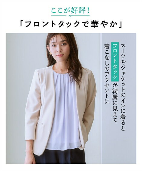 【15%セール 6/11 1:59まで】シャツ ブラウス レディース オフィス 半袖 シフォン フロントタック フレア ジョーゼット フリル フォーマル スーツ インナー 裏地付 入学式 結婚式 七五三 母 ママ 白 オフホワイト ブルー ピンク グリーン S/M/L/LL ニッセン nissen