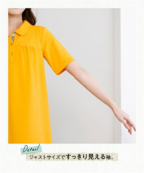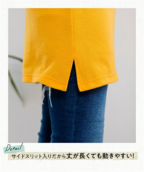 丸襟なのでふつうのポロシャツより可愛く着られるし、お尻がすっぽり隠れる着丈も気に入っています。