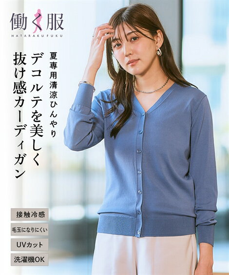 カーディガン レディース ひんやり 接触冷感 抜け感Vネック UVカット 毛玉防止 夏 オフホワイト〜杢グレー S/M/L/LL 羽織り 冷房対策 ニッセン nissen
