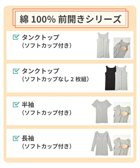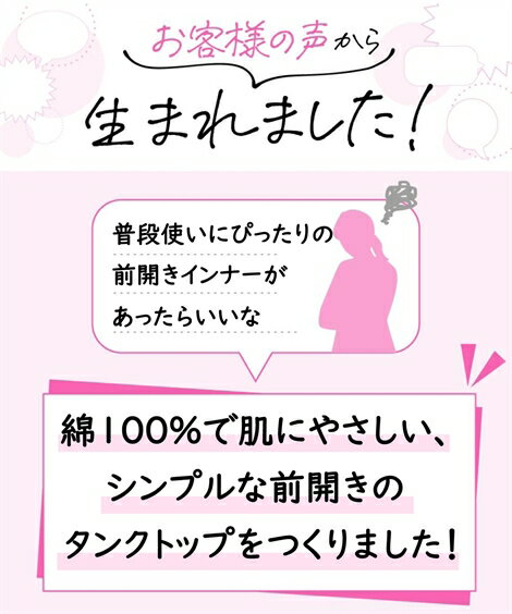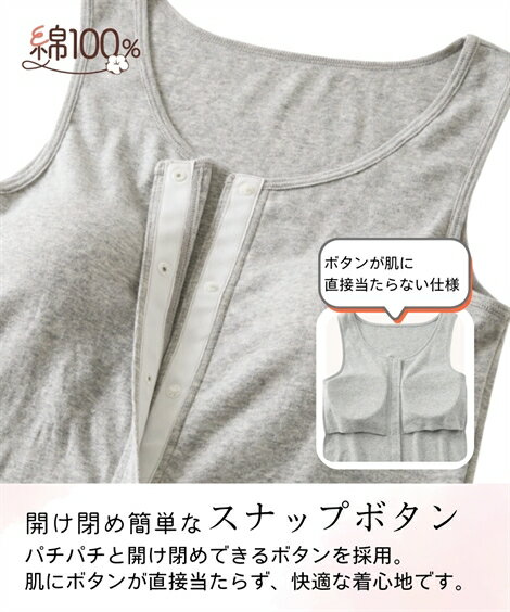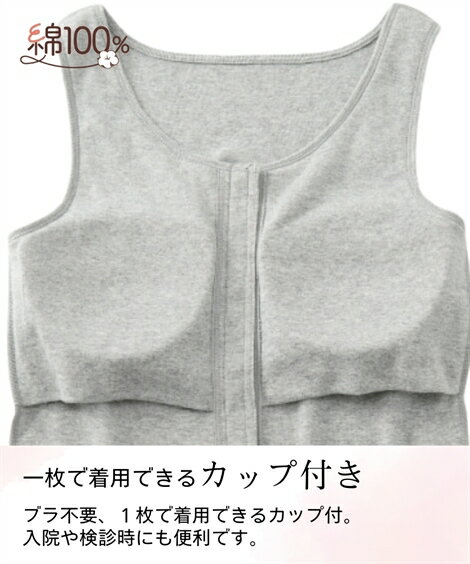 肌着・インナー S - 6L 綿100% ソフトカップ付 前開き 丈長め タンクトップ ニッセン 女性 下着 レディース 入院 診察 授乳 五十肩 楽 ブラトップ カジュアル