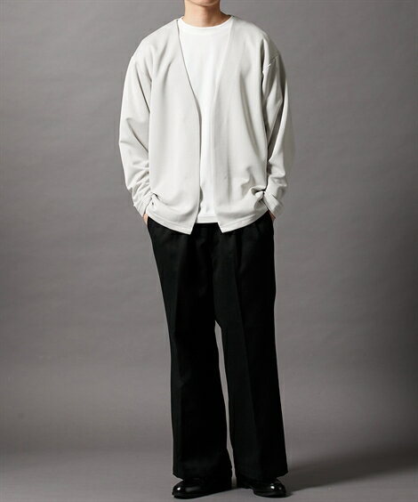 トップス 2点セット きれいめ ノーカラー カーディガン+半袖Tシャツ M-LL メンズ ニッセン nissen