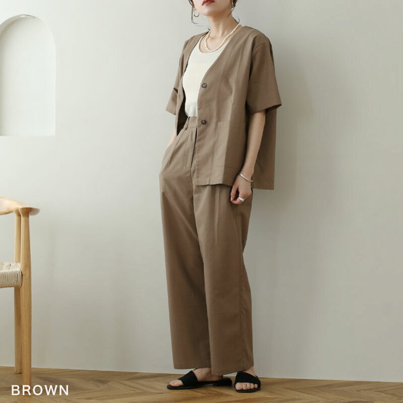 【メール便】《クーポンで→3,840円》麻 ジャケット レディース オーバーサイズ ゆったり リネン エクリュ ブラウン セットアップ アウター 春 夏 ノーカラー ノアル 240417【予約 7月10日より3営業日で発送】