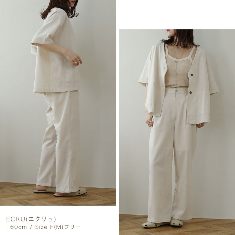 セットアップで欲しかったので、ボトムスの在庫を見たらエクリュしか残っておらず一択でしたが、暑い日でも気軽に着用できて、購入して良かったです。
