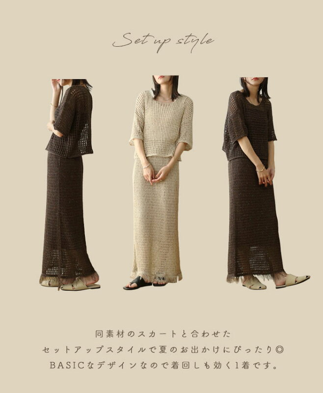 《クーポンで40%OFF→4,740円》サマーニット スカート レディース ロングスカート ペンシル フリンジ MIX ニット ナロースカート ゆったり 淡色 夏 春 秋 ロング丈 ウエストゴム ベージュ ブラウン ノアル noahl 240513【予約 ベージュ:7月10日から3営業日で発送】