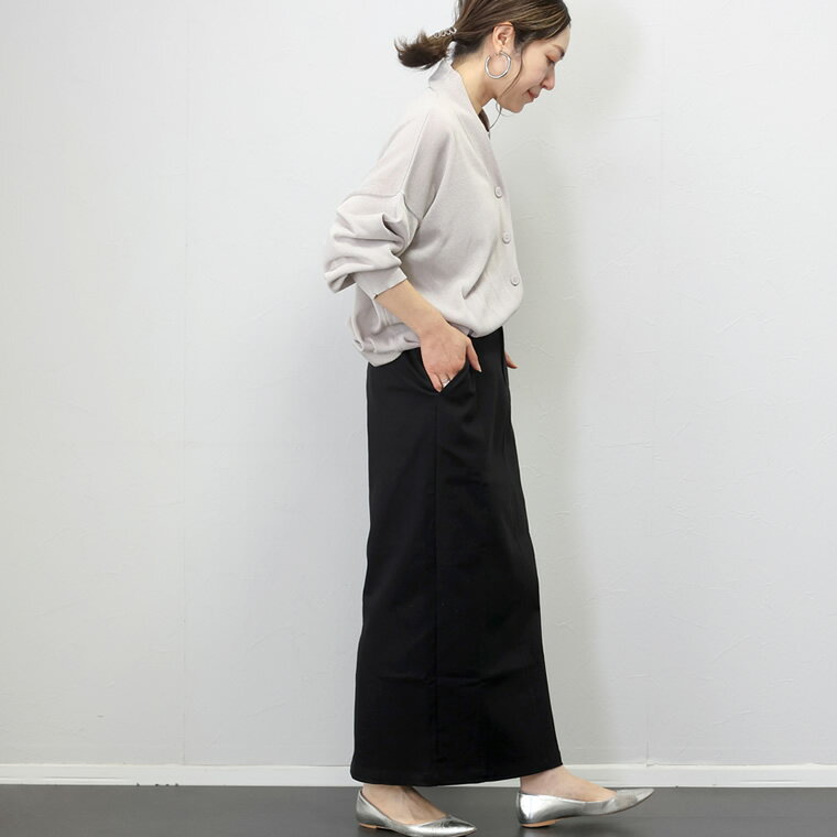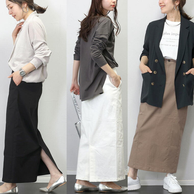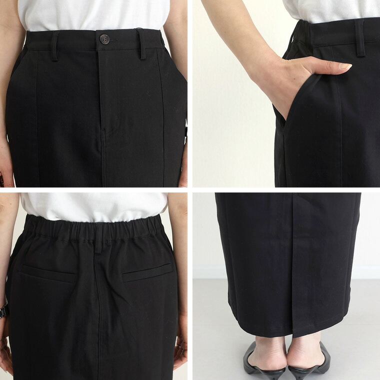 【撥水加工】ストレッチコットンツイルロングスカート 【メール便可/ma3】 スカート ロング 綿 ストレッチ 伸縮 Iライン スリット 後ろゴム はっ水 M L ツイル 無地 30代 40代 レディース
