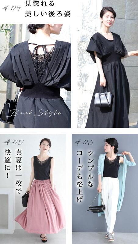 とても好きなのに胸元の露出が多くて着られなかったワンピースが、このレースタンクトップのお陰で着られるようになりました。