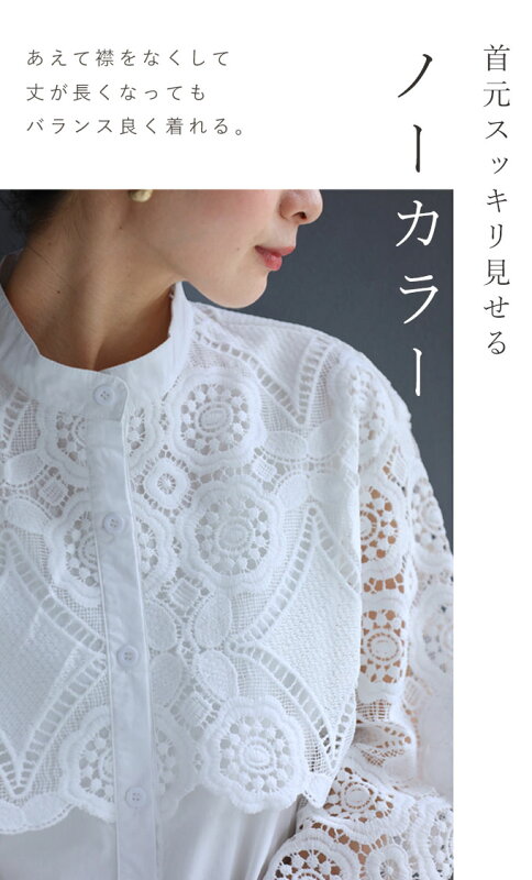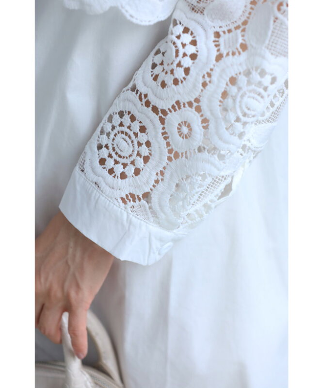 【ホワイトのみ再入荷♪6/4 12時&20時】(S~3L対応)美しいカットワークレースロングシャツ