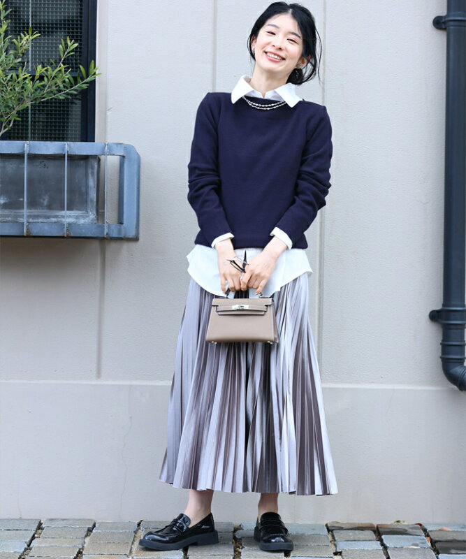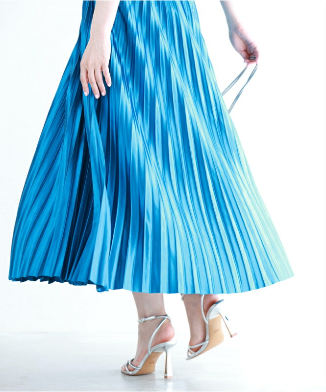 歩くたびに縦のプリーツが美しく揺れ、光沢のある輝きを放つところが素敵です。