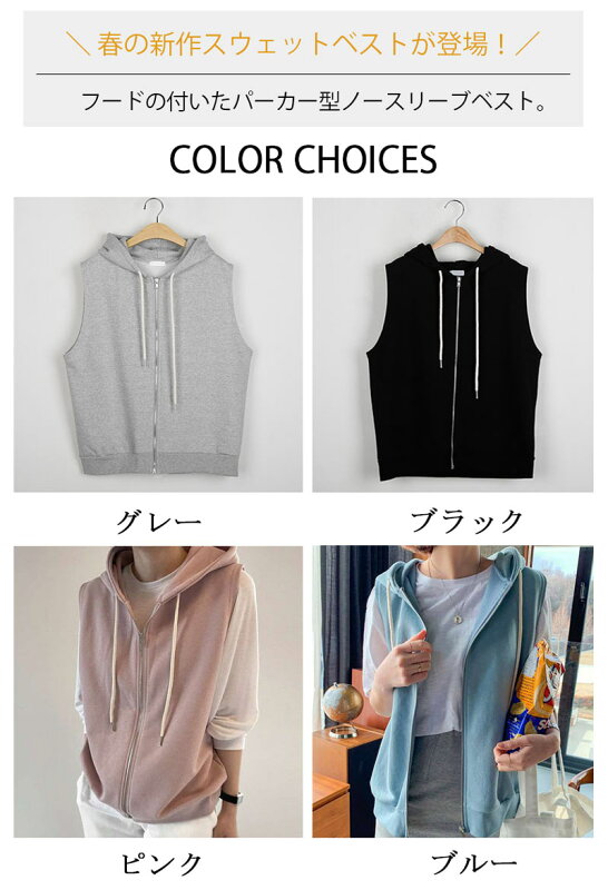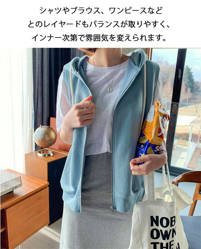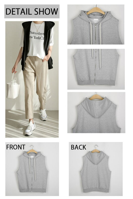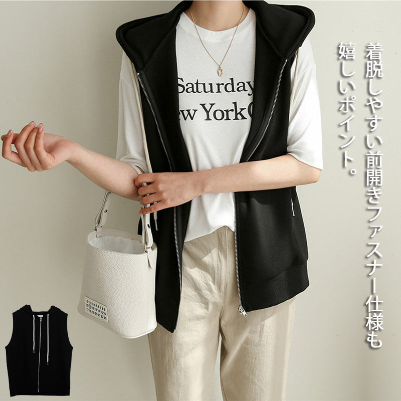 【スーパーセール限定 P5倍】ベスト パーカー レディース 春 秋 前開き トップス フード付き ジップアップ パーカーベスト ノースリーブ ゆったり カットソーベスト 重ね着 レイヤード スウェット アウター お洒落 カジュアル 体型カバー ブラック グレー