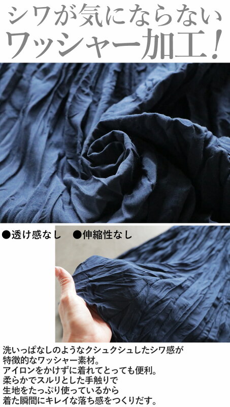 ワンピースのワッシャーの軽い感じが着ていても心地よいです ねじって収納できるので旅行に良いと思い購入しました
