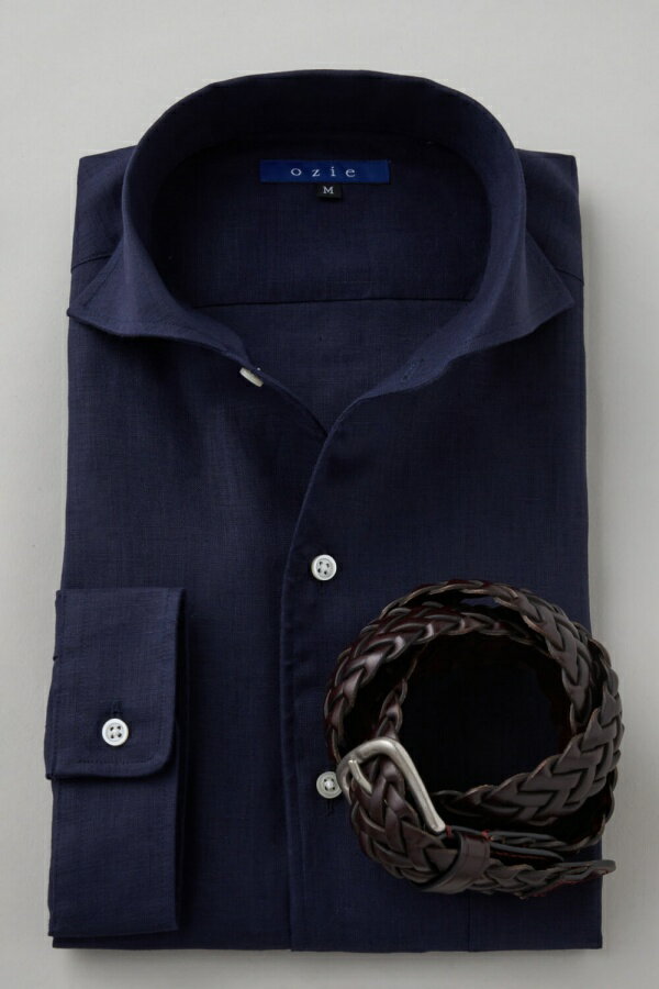 麻100% イタリアンカラー ワイドカラー | ワイシャツ メンズ シャツ 高級 ビジネス おしゃれ ドレスシャツ リネン シャツ 七分袖 リネンシャツ カッターシャツ ビジネスシャツ yシャツ 麻 ネイビー 紺 無地 ビジネスワイシャツ