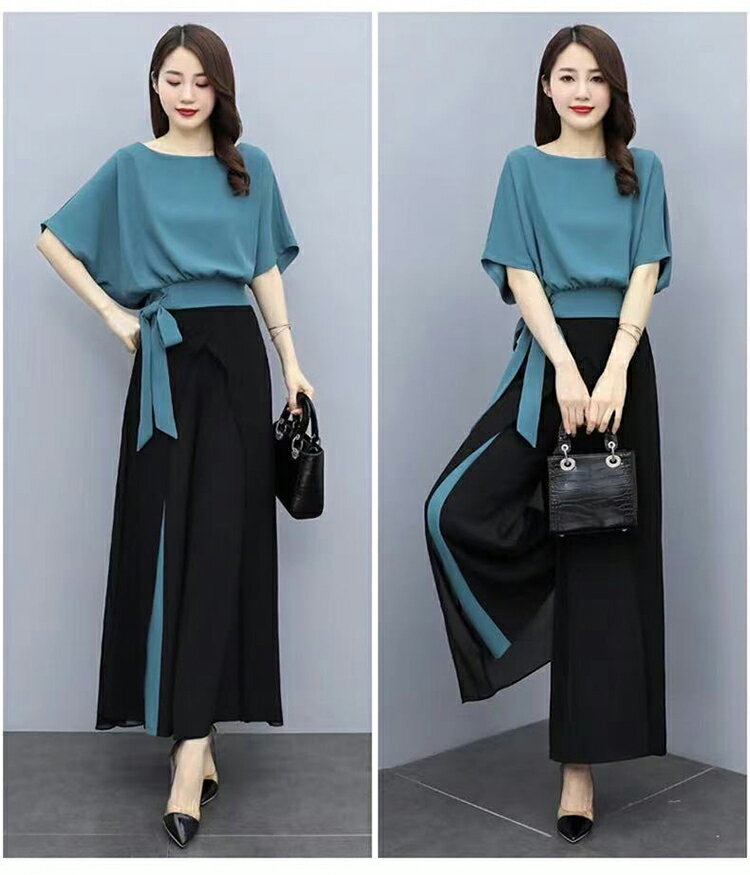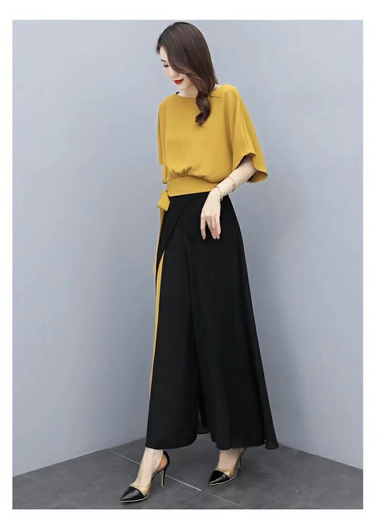 2022 オフィスカジュア 夏 レディース セットアップ フォーマル 半袖 シフォン ブラウス ウェストリボン付 ワイドパンツ キュロット風 2点セット 大きいサイズ 通勤 OL 韓国 きれいめ おしゃれ 披露宴 結婚式 二次会 卒業式 謝恩会 発表会 ママ ミセス スーツ S-3XL RSNK
