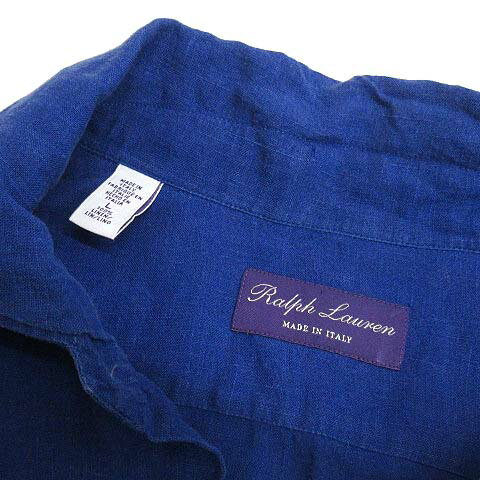 【中古】ラルフローレン RALPH LAUREN パープルレーベル リネン ワイドカラー シャツ 長袖 ブルー 青 L イタリア製 ☆AA★ メンズ 【ベクトル 古着】 241001