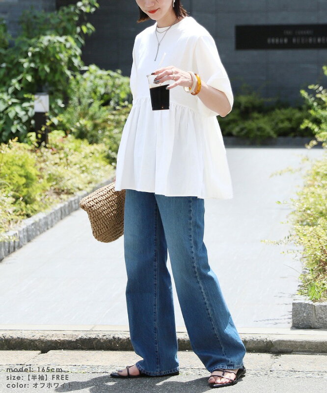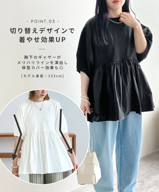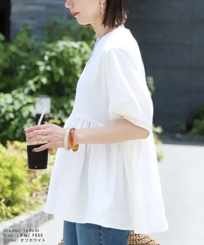 今だけ☆3,762円!ランタンスリーブティアードカットソー(day253682) レディース 2024年夏新作 プルオーバー フレア フリル キレイめ フェミニン カジュアル 異素材 切替 半袖 トップス reca レカ ネコポス発送10 k
