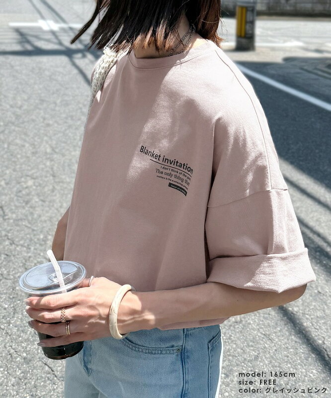 今だけ☆3,300円!前後ロゴ五分袖オーバーサイズTシャツ(bel-blc-6115) レディース 2024年夏新作 プルオーバー ロゴT カジュアル シンプル Tシャツ 半袖 トップス カットソー 夏 reca レカ ネコポス発送10 k