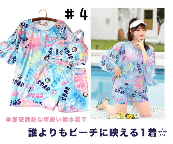 【1-2営業日発送】【動画あり】水着 タンキニ 体型カバー トップス付き セット かわいい セパレート ママ水着 女性用 大人 オーバーサイズ 3L 4L 5L 6L 夏 海 プール 大人気 ビーチウェア 青 半袖 大きいサイズ ぽっちゃり ラッシュガード ミセス スイミング