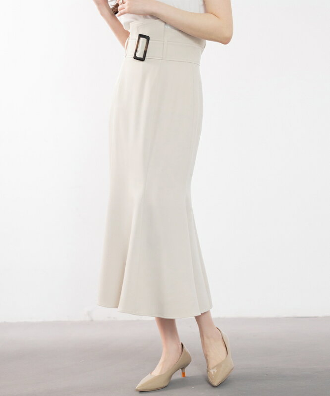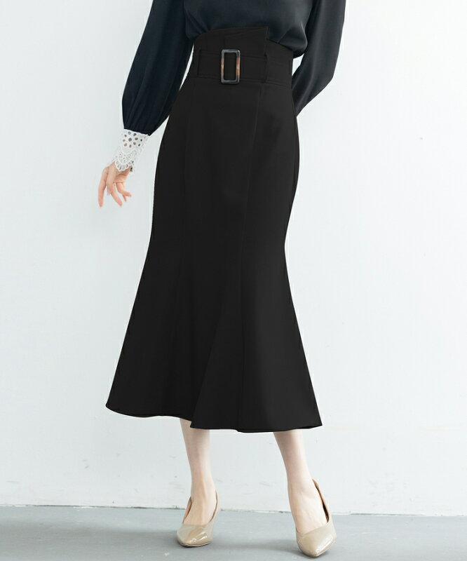 【クーポンで30%OFF】【一部予約】スカート レディース マーメイドスカート ハイウエスト ミモレ丈 飾りベルト バックル付きベルト フレア裾 バックウエストゴム バックファスナー 大人オフィス 通勤 きれいめ 女の子 SAISON DE PAPILLON sdp0197