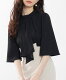 【クーポンで30%OFF】【一部予約】ブラウス レディース トップス スタンドカラー 五分袖 五分丈スリーブ ボウタイ風デザイン 薄手 丈長 ボリューム袖 バックファスナー付き オケージョン 入学式 卒業式 オフィスカジュアル SAISON DE PAPILLON sdp0199
