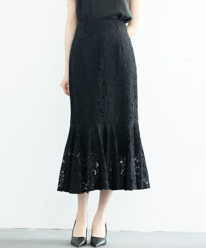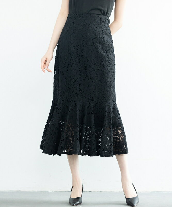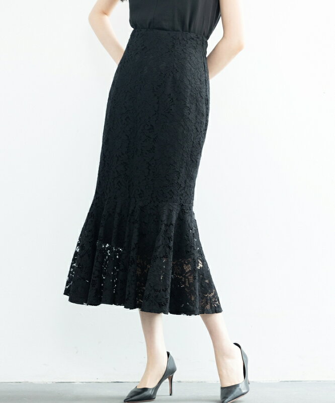 【楽天スーパーSALE⇒3490】【一部予約】スカート レディース ボトムス ハイウエスト レース生地 マーメイドシルエット ミモレ丈 裏地付き ファスナー付き 脚長効果 薄手 ウエストマーク 涼しい フェミニン 女の子 オフィス 式典SAISON DE PAPILLON sdp0200