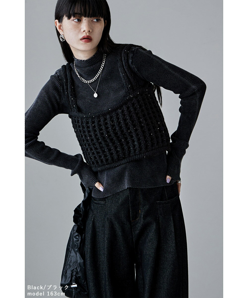 スパングルニットメッシュビスチェ トップス ビスチェ ニット ニットビスチェ メッシュ編み メッシュ ざっくり スパンコール 重ね着 レイヤード ノースリーブ スリーブレス ラメ キラキラ