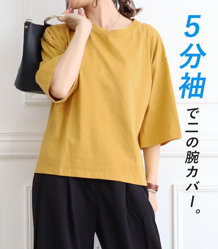 【1点1790円+2点購入+クーポン利用で!】 Tシャツ レディース カットソー コットン100% 綿100% 涼しい 肘が隠れる 半袖 カジュアル おしゃれ 大きいサイズ 無地 5分袖 7分袖 カットソー トップス セール SALE (送料無料)[郵1.5]^t560^