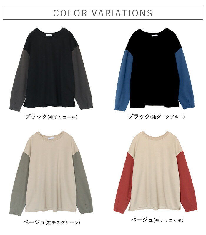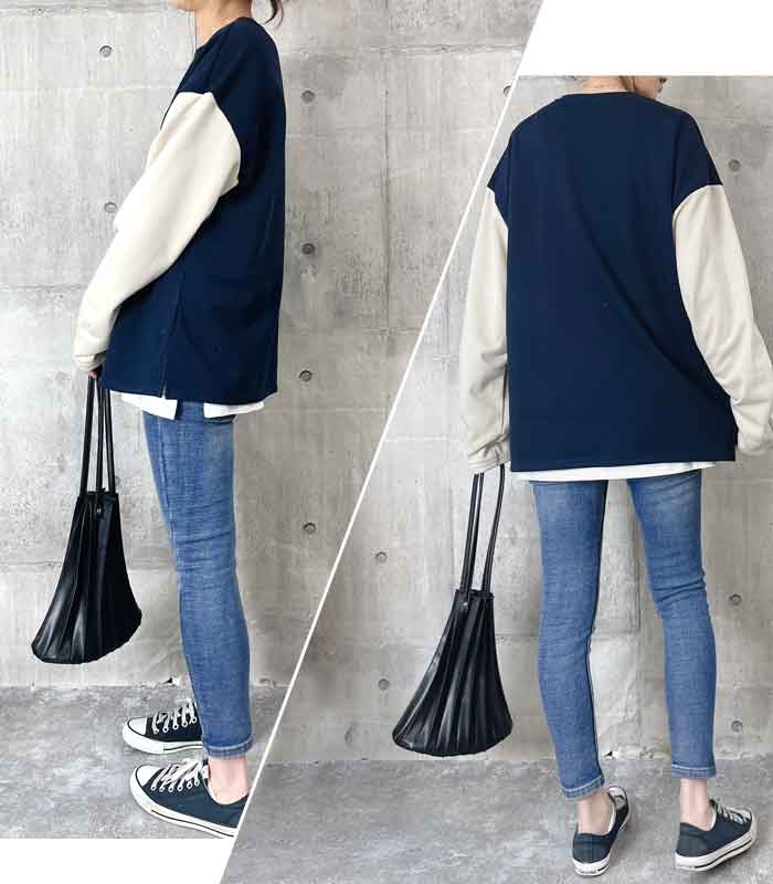 【バグ価格!1,451円⇒72%OFFクーポンで】 【楽天1位】バイカラー スウェット 配色デザイン プルオーバー ゆったり レディース トップス 2WAY 春 (送料無料)[郵3]^t968^