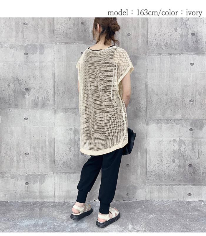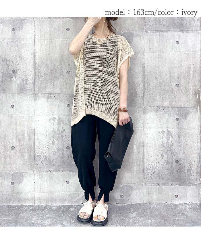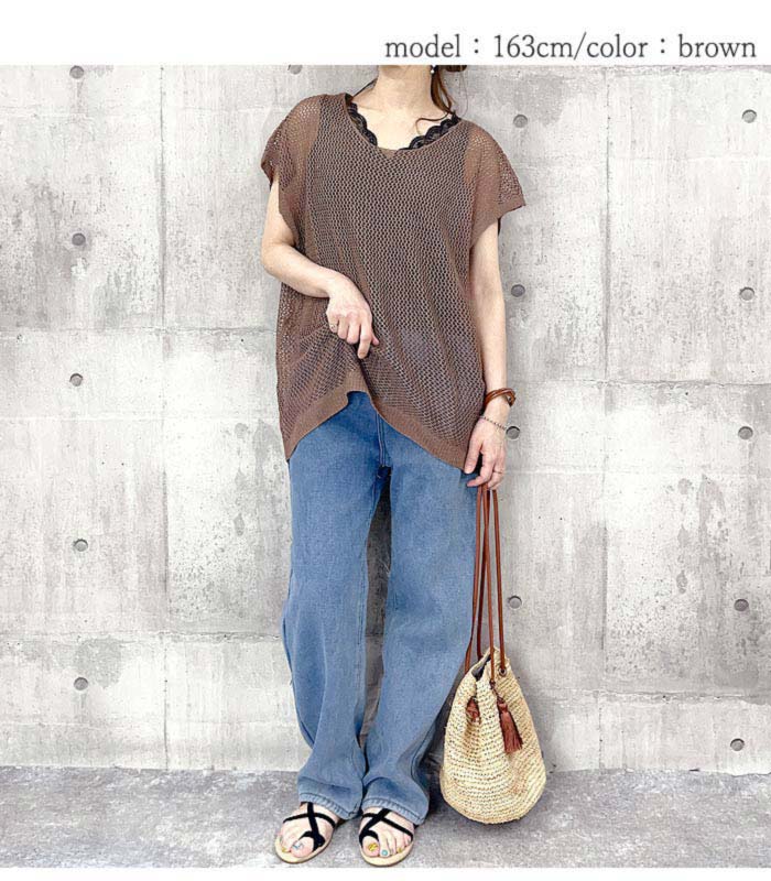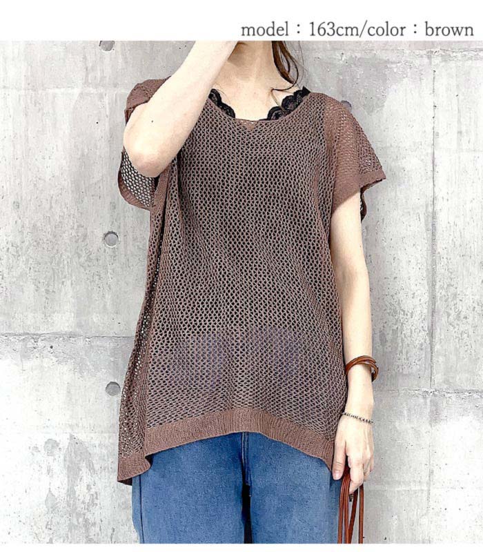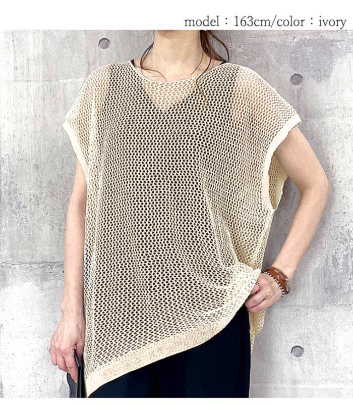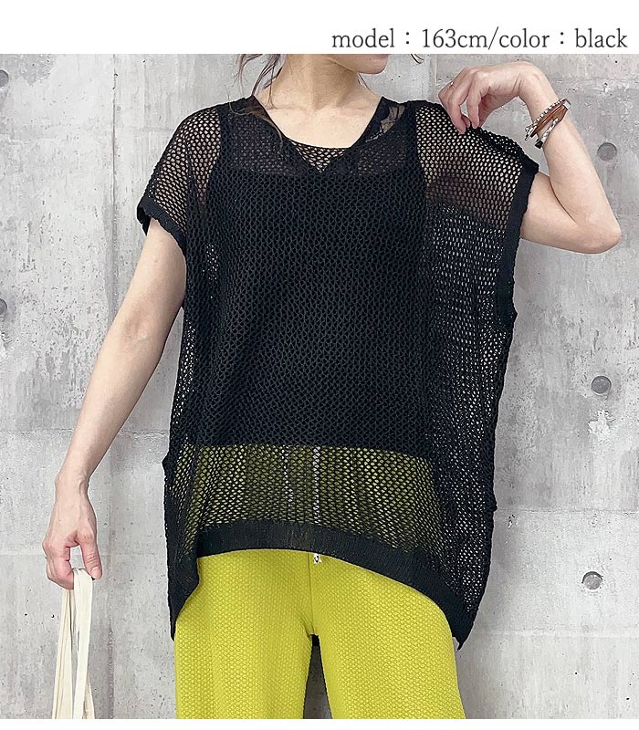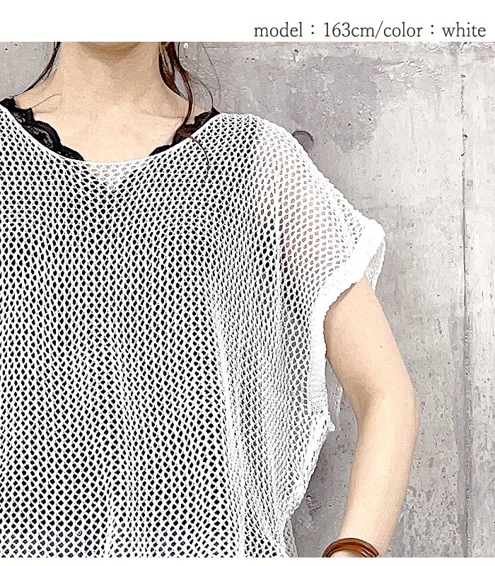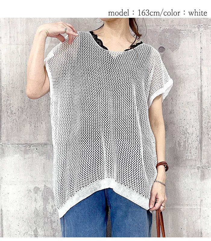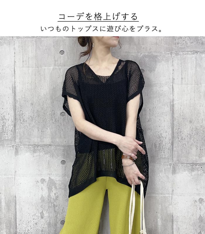 メッシュニット サマーニット 透かし編み 肌見せ 半袖 トップス 重ね着 レイヤード あみあみ 透け フィッシュネット かぎ針編み 編み 送料無料 [郵2]^t996^ セール