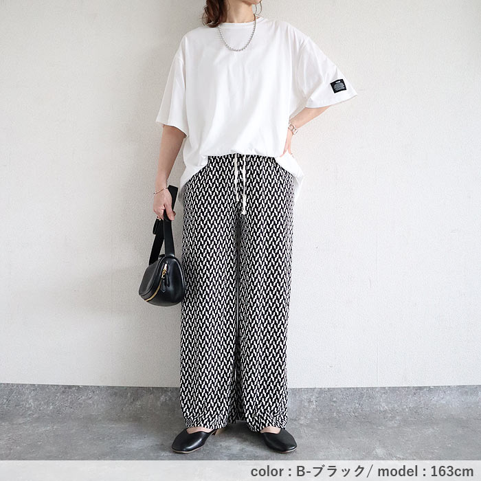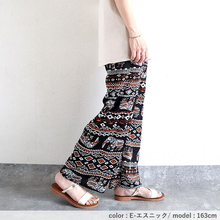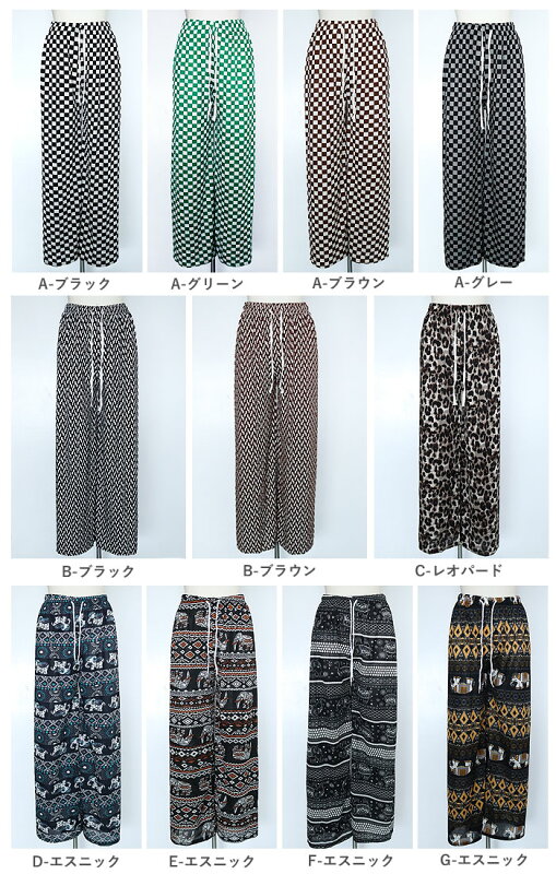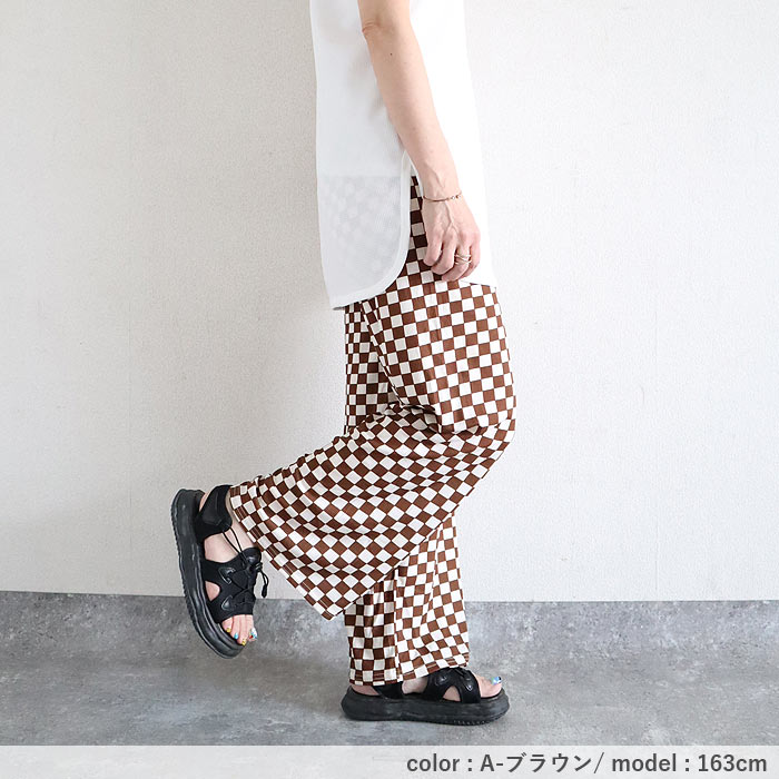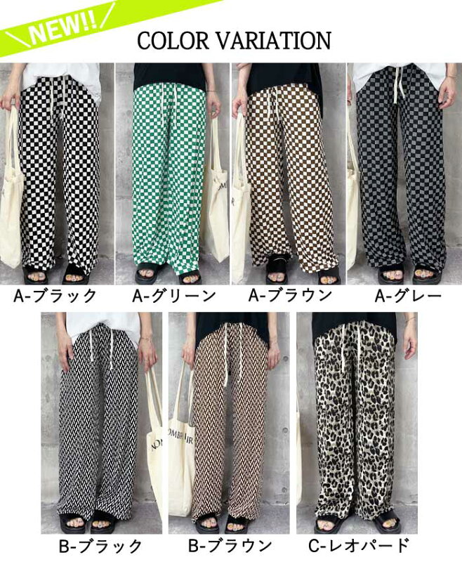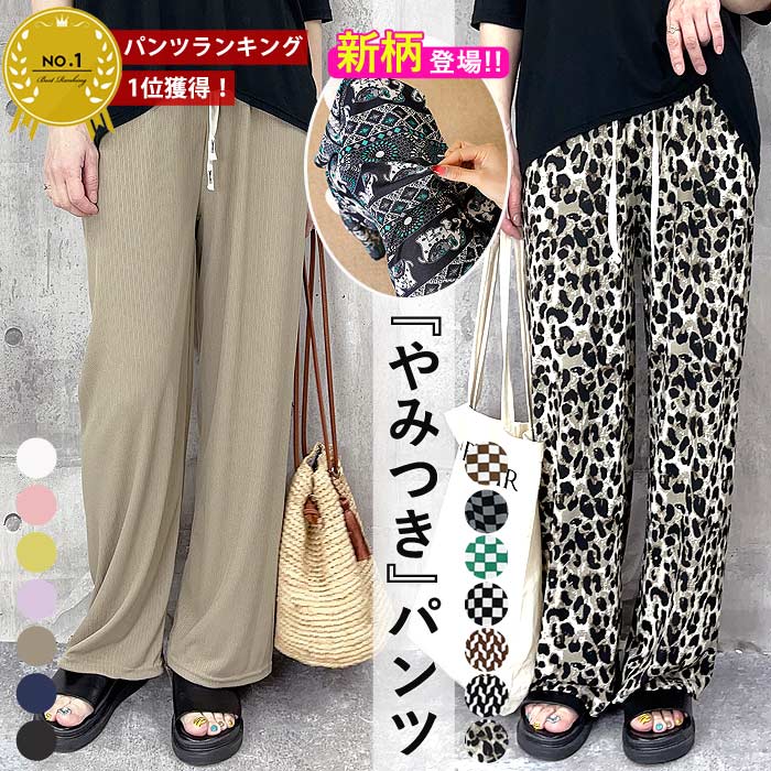 【2点購入で1点990円+クーポン利用で!】 パンツ レディース セミワイドパンツ ストレートパンツ レオパード チェック 柄パンツ 楽ちん ウエストゴム 春 夏 (送料無料)[郵2]^b400^