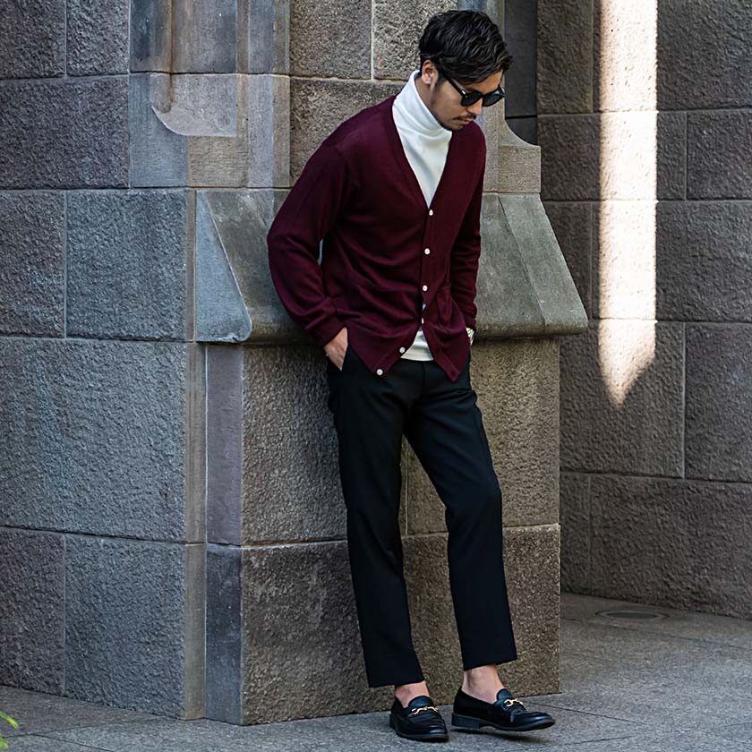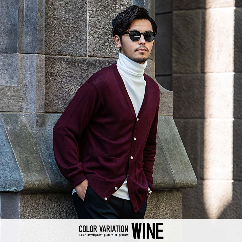 【送料無料】カーディガン ニット メンズ ブランド 大人 オシャレ 暖かい 防寒 長袖 Vネック 天竺 12G 伸縮性 羊毛 SHEEP CASHMERE グレー ブラック ネイビー ワイン ライラック 黒 S M L XL カジュアル CavariA 秋 冬 20代 30代 40代 メンズファッション↑