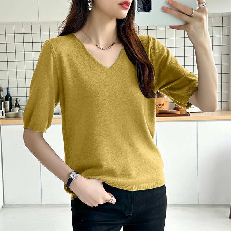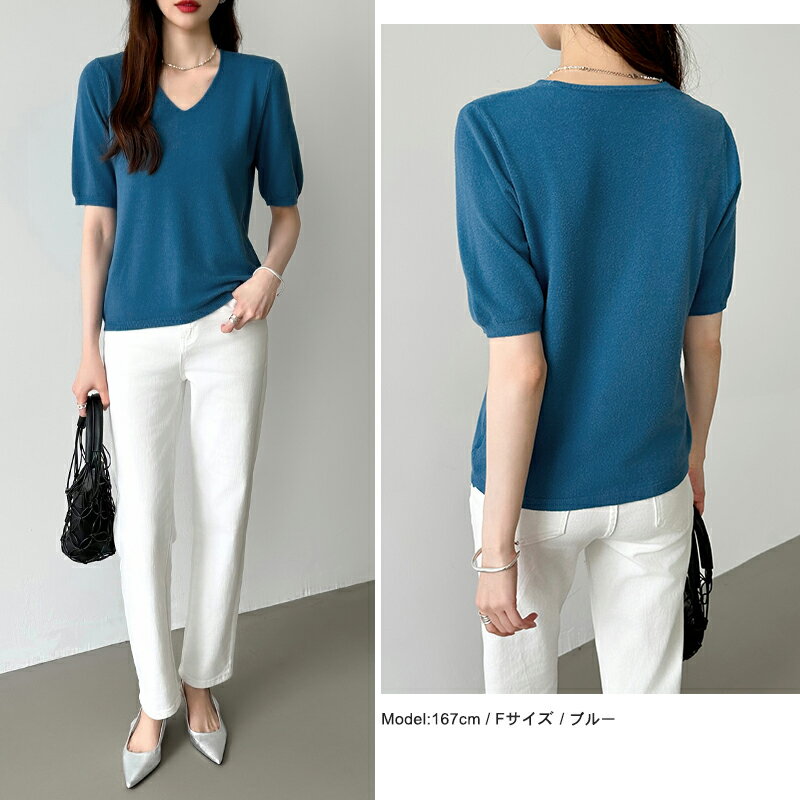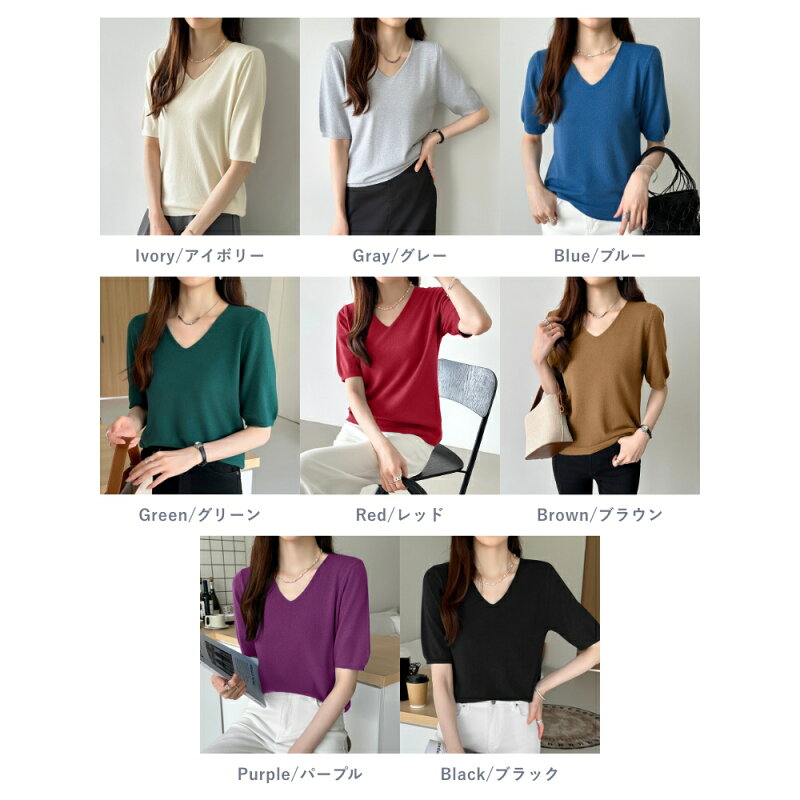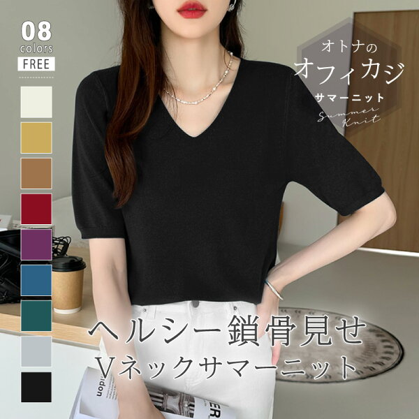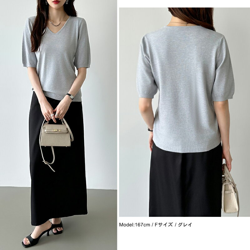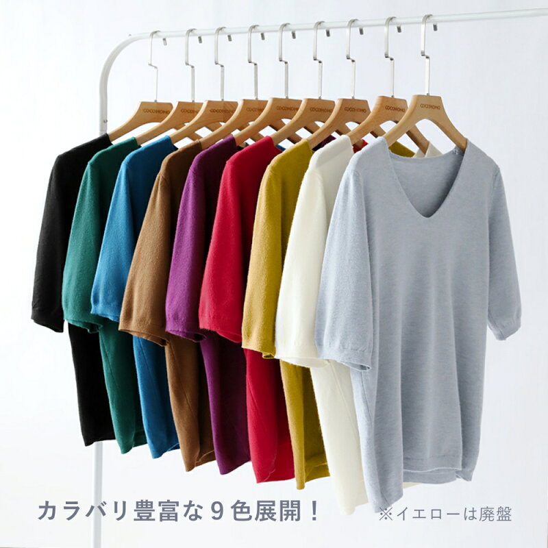 【6/12!クーポンで1,540円】 サマーニット 半袖 トップス ニット レディース vネック ニットトップス 半袖ニット 五分袖 ゆったり 二の腕カバー 袖長め 薄手 サマー オフィス オフィスカジュアル 通勤 カジュアル きれいめ 上品 夏トップス 春夏 春 夏 秋 cocomomo