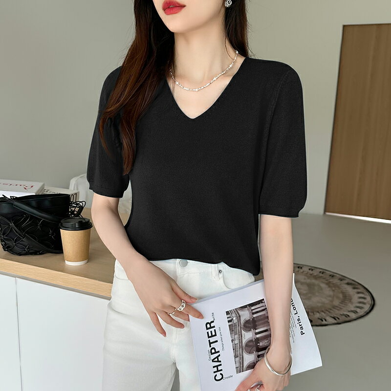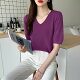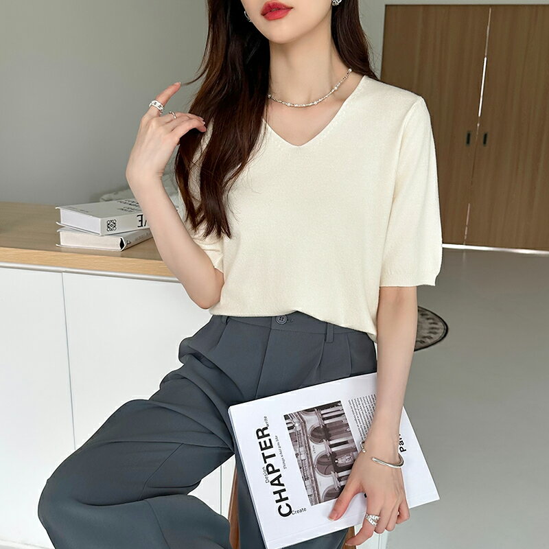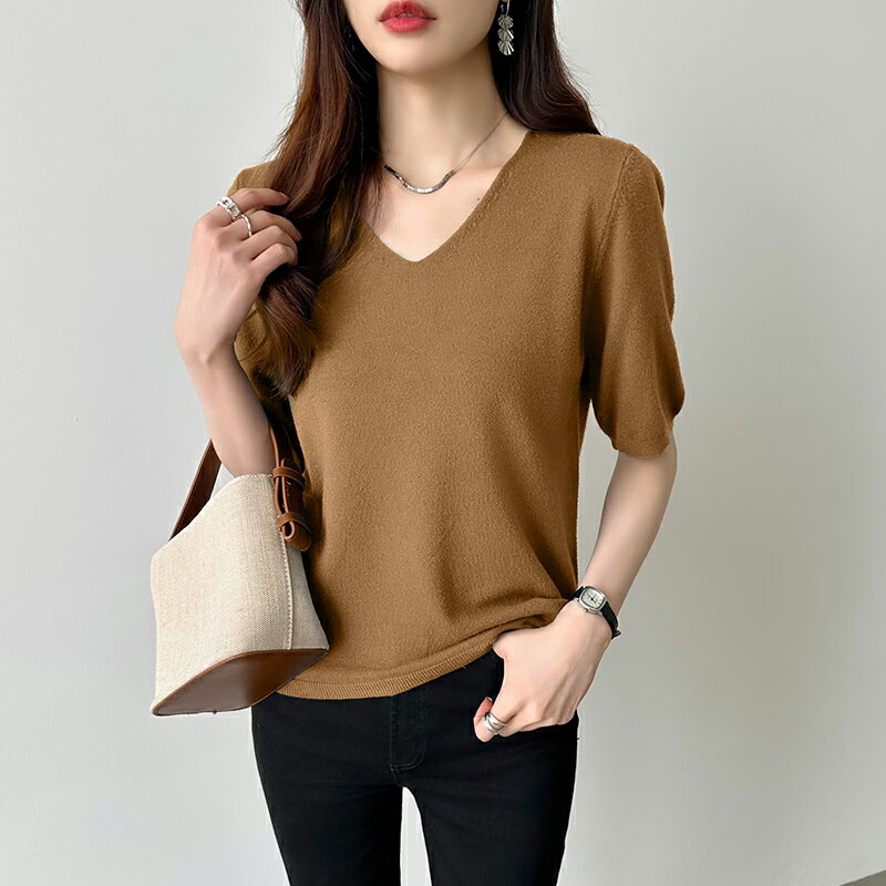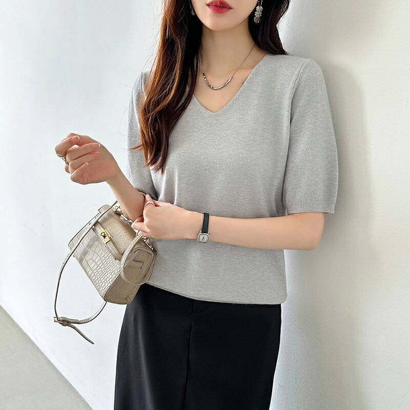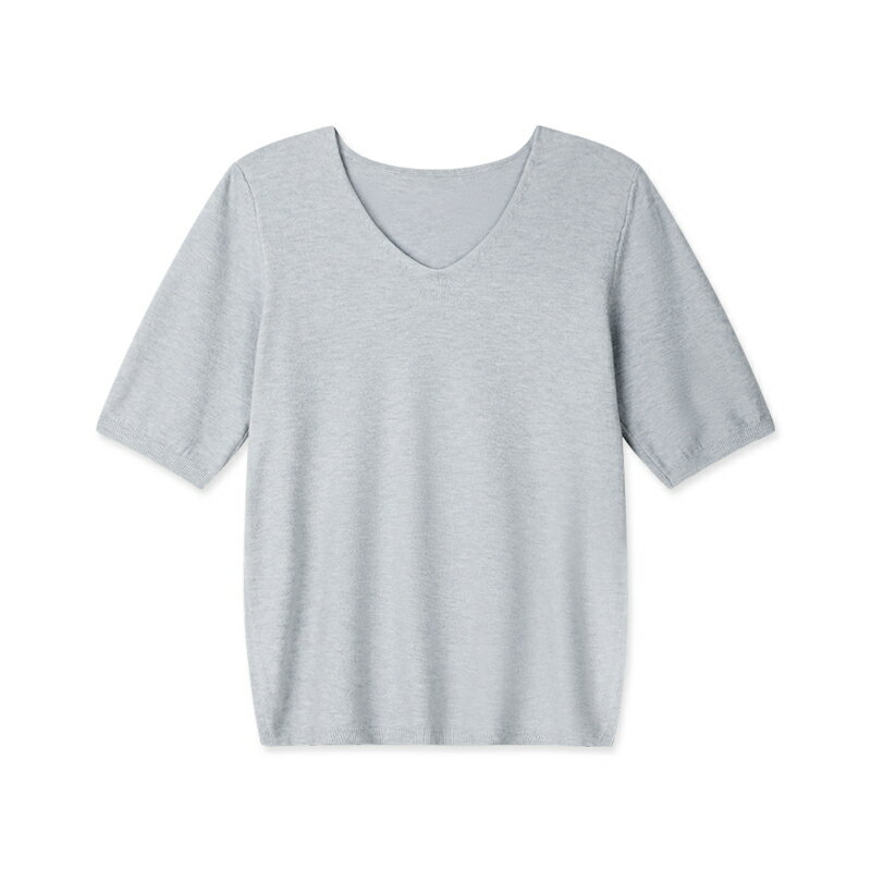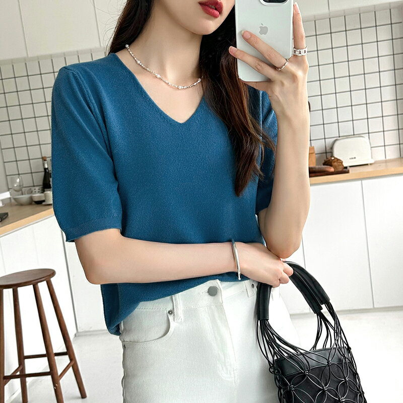 【6/12!クーポンで1,540円】 サマーニット 半袖 トップス ニット レディース vネック ニットトップス 半袖ニット 五分袖 ゆったり 二の腕カバー 袖長め 薄手 サマー オフィス オフィスカジュアル 通勤 カジュアル きれいめ 上品 夏トップス 春夏 春 夏 秋 cocomomo