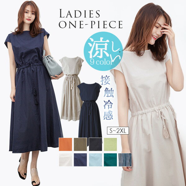 クーポン利用で最低1,782円 ワンピース ロングワンピース レディース 涼しい 半袖 夏 接触冷感 麻 綿 即納 春 きれいめ マキシワンピース ロング Uネック ワンピ リネン 薄手 柔らか シンプル 30代40代50代 送料無料 ひんやり 長袖 ブラック ネイビー 敬老の日 S M L LL 2XL