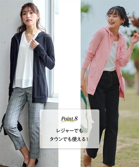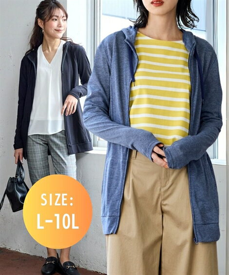 \クーポン有/トップス 大きいサイズ12分袖綿混うすカルロング丈パーカー(UVカット+吸汗速乾+抗菌防臭+毛玉防止)レディース 春夏 日焼け防止 羽織 30代 40代 50代 カジュアル ベーシック 無地