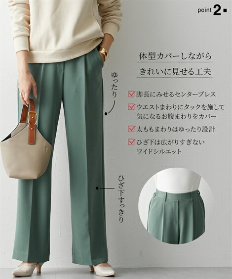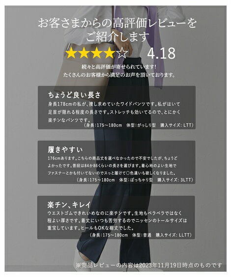 \クーポン有/【特別価格・送料無料】高身長 ストレッチきれい見えワイドパンツ (選べる股下) 丈長め・トールサイズ レディース 大きいサイズ 20代 30代 40代 50代 ベーシック 無地 通勤通学 カジュアル きれいめ 春夏秋冬 オールシーズン