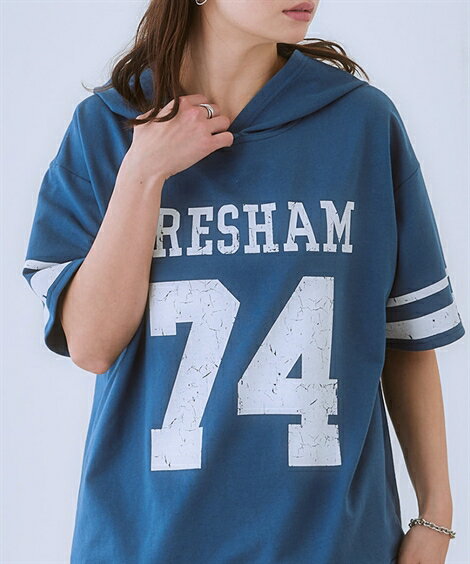 トップス <大きいサイズ> ゆるシルエットかすれ調ロゴ入半袖パーカーレディース 大きいサイズ 20代 30代 40代 50代 春 夏 秋 お出かけ シンプル ベーシック 体型カバー スマイルランド smileland