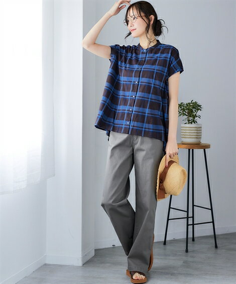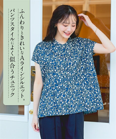 トップス スキッパーAラインブラウスチュニック【カレンデュラオイル加工】レディース 大きいサイズ 20代 30代 40代 50代 春 夏 秋 お出かけ シンプル ベーシック 体型カバー スマイルランド smileland