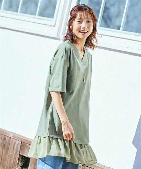 特別クーポン配布中!トップス <大きいサイズ>着てサラ裾シフォン切替Aラインチュニック(接触冷感・UVカット)レディース 大きいサイズ 20代 30代 40代 50代 春 夏 秋 お出かけ シンプル ベーシック 体型カバー スマイルランド smileland