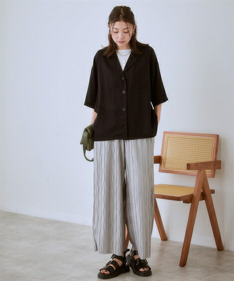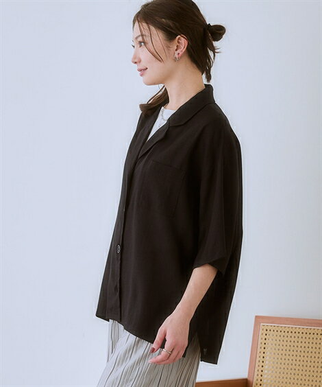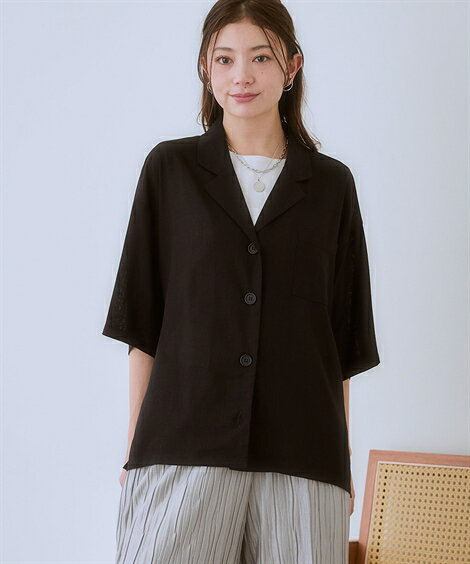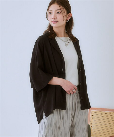 アウター <大きいサイズ> ルーズシルエット5分袖シャツジャケットレディース 大きいサイズ 20代 30代 40代 50代 春 夏 秋 お出かけ シンプル ベーシック 体型カバー スマイルランド smileland