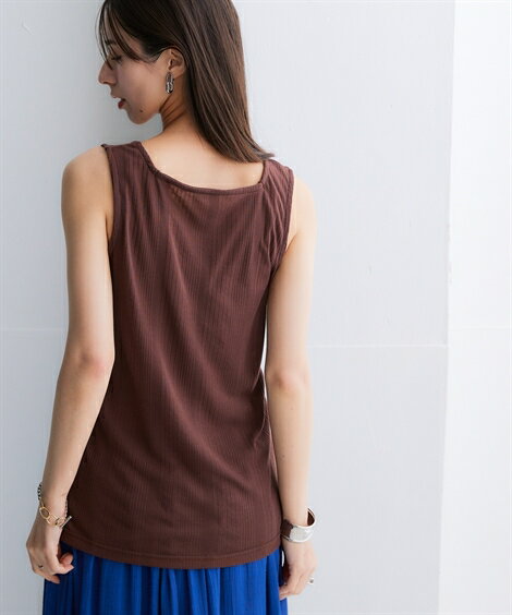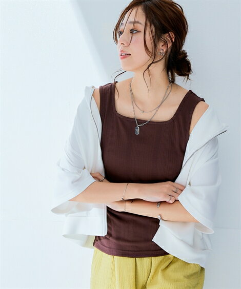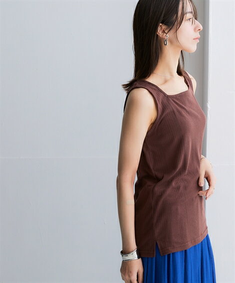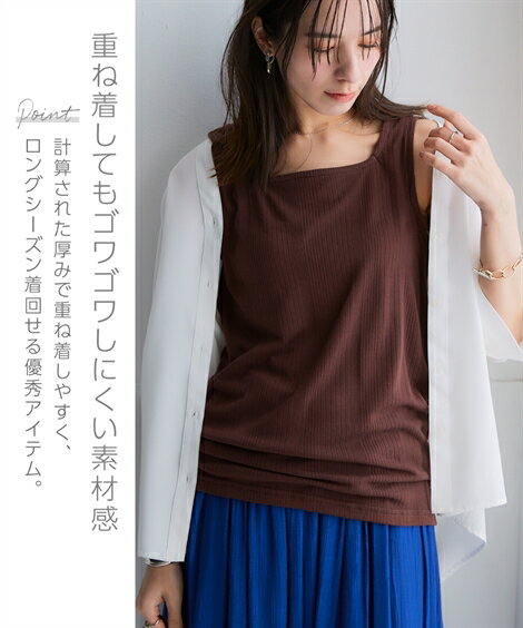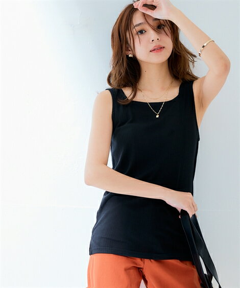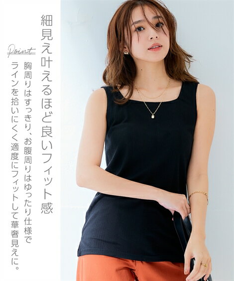 トップス ランダムリブスクエアネックタンクトップ(薄手素材)<大きいサイズ有>レディース 大きいサイズ 20代 30代 40代 50代 春 夏 秋 お出かけ シンプル ベーシック 体型カバー スマイルランド smileland