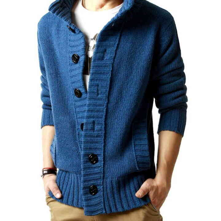 メンズ 全4色×5サイズニットカーディガン ボタン式 メンズカーディガン カーディガン ニット 無地 ボリューム襟 スリム 長袖