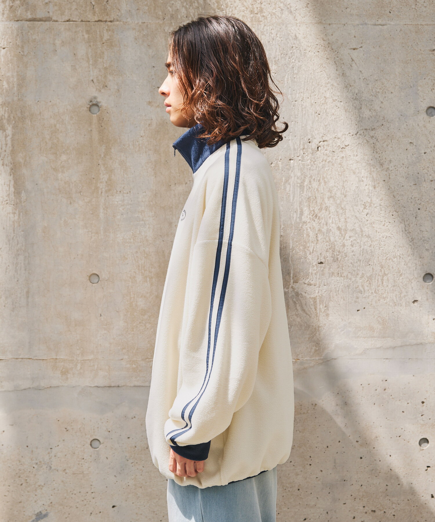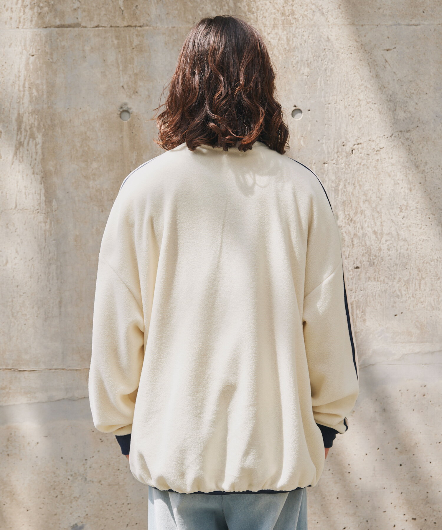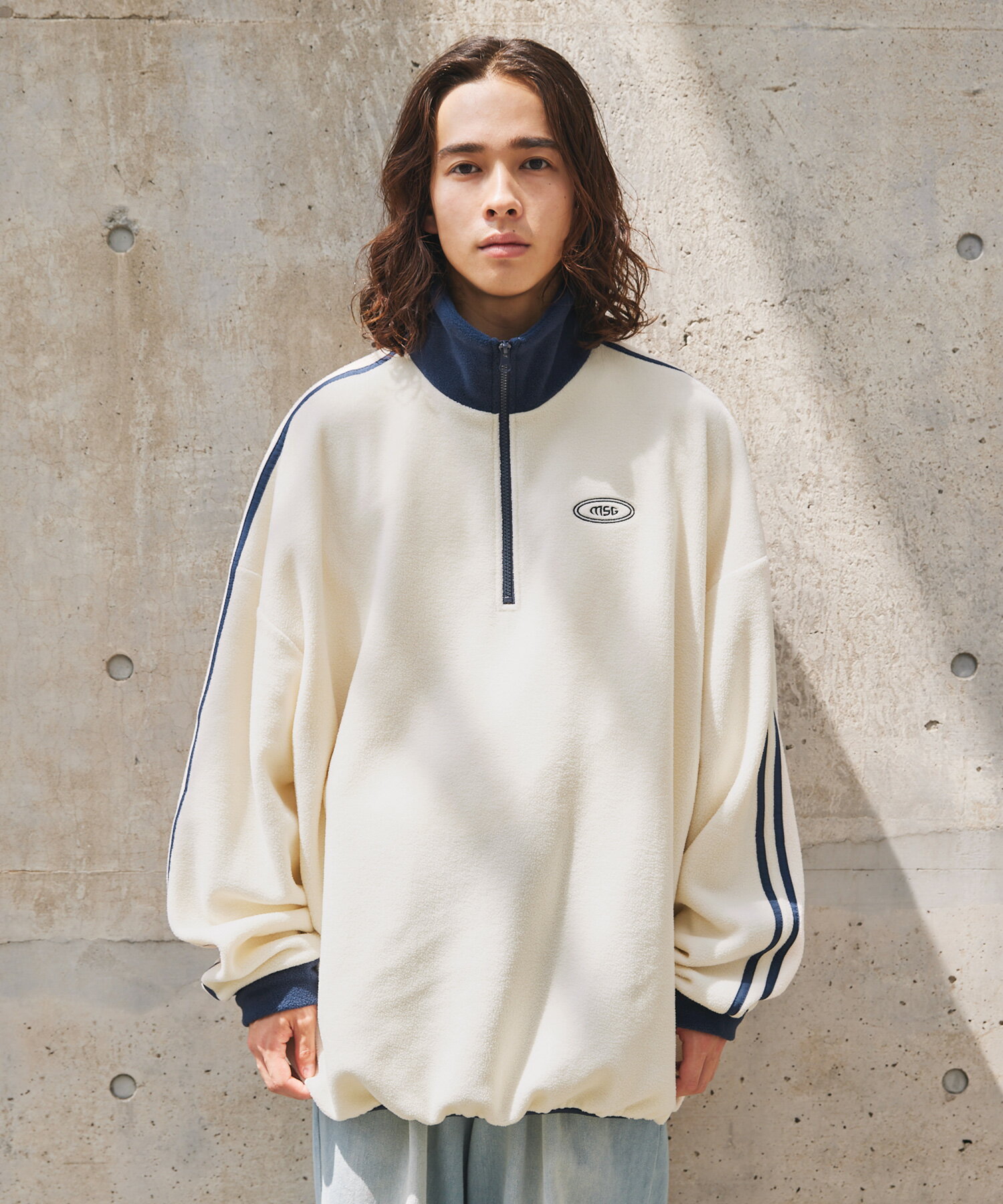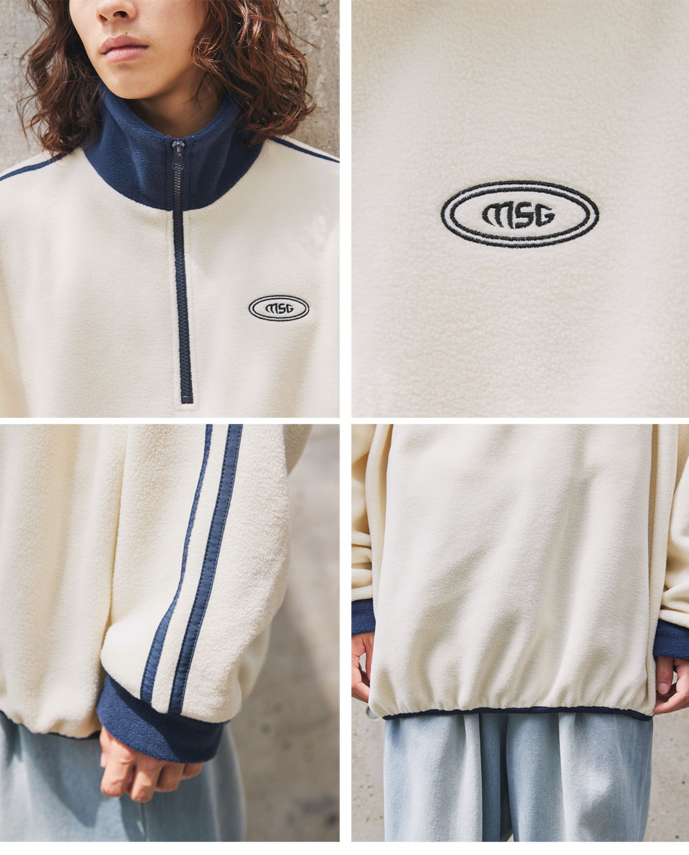 スウェット メンズ レディース ハーフジップ フリース 春 春服 プルオーバーオーバーサイズ ビッグシルエット 配色 サークルロゴ サイドライン 刺繍 ストレッチ性 ユニセックス アイボリー ブラック グレー サックス オレンジ グリーン ブラウン XS S M L XL